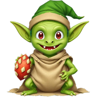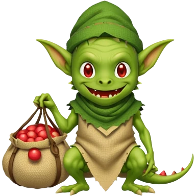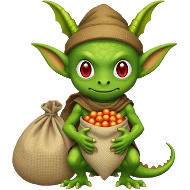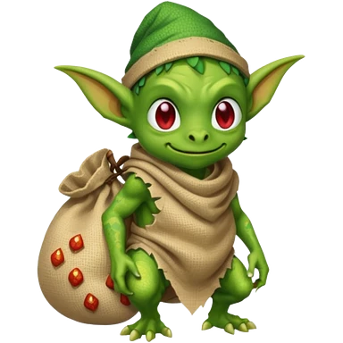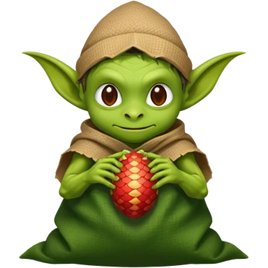 A pixel art goblin with a cloth sack over its back filled with dragon eggs. emoji | AI Emoji Generator
