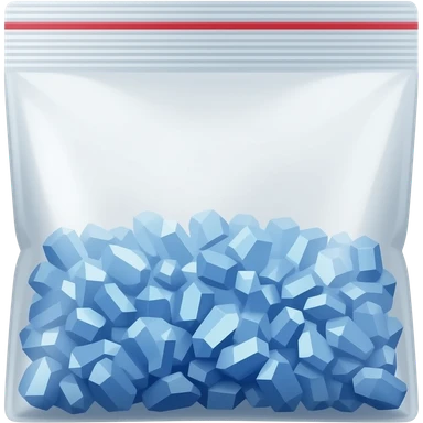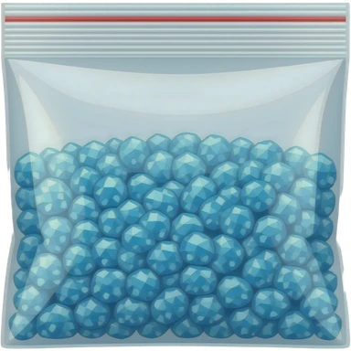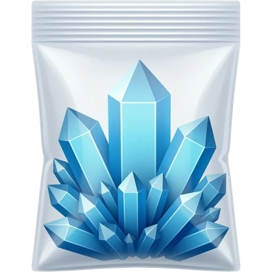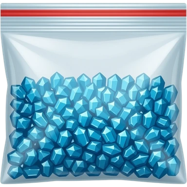 a plastic ziplock bag with blue shiny crystal shards emoji