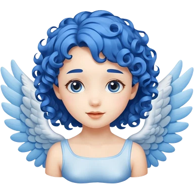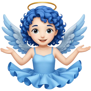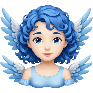 A playful angel girl with short blue curls, fluttering tiny wings emoji | AI Emoji Generator