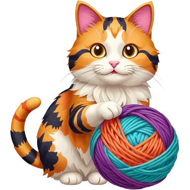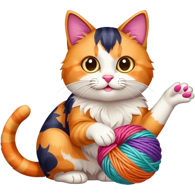 A playful cat leaning over the basket edge, reaching for a yarn ball. emoji