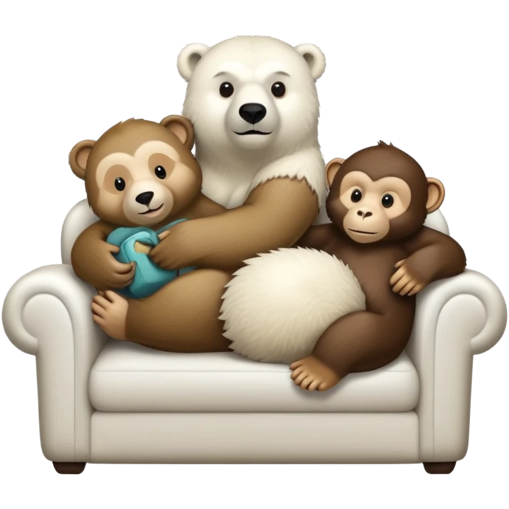 A polarbear a monkey, and an otter on a couch emoji | AI Emoji Generator