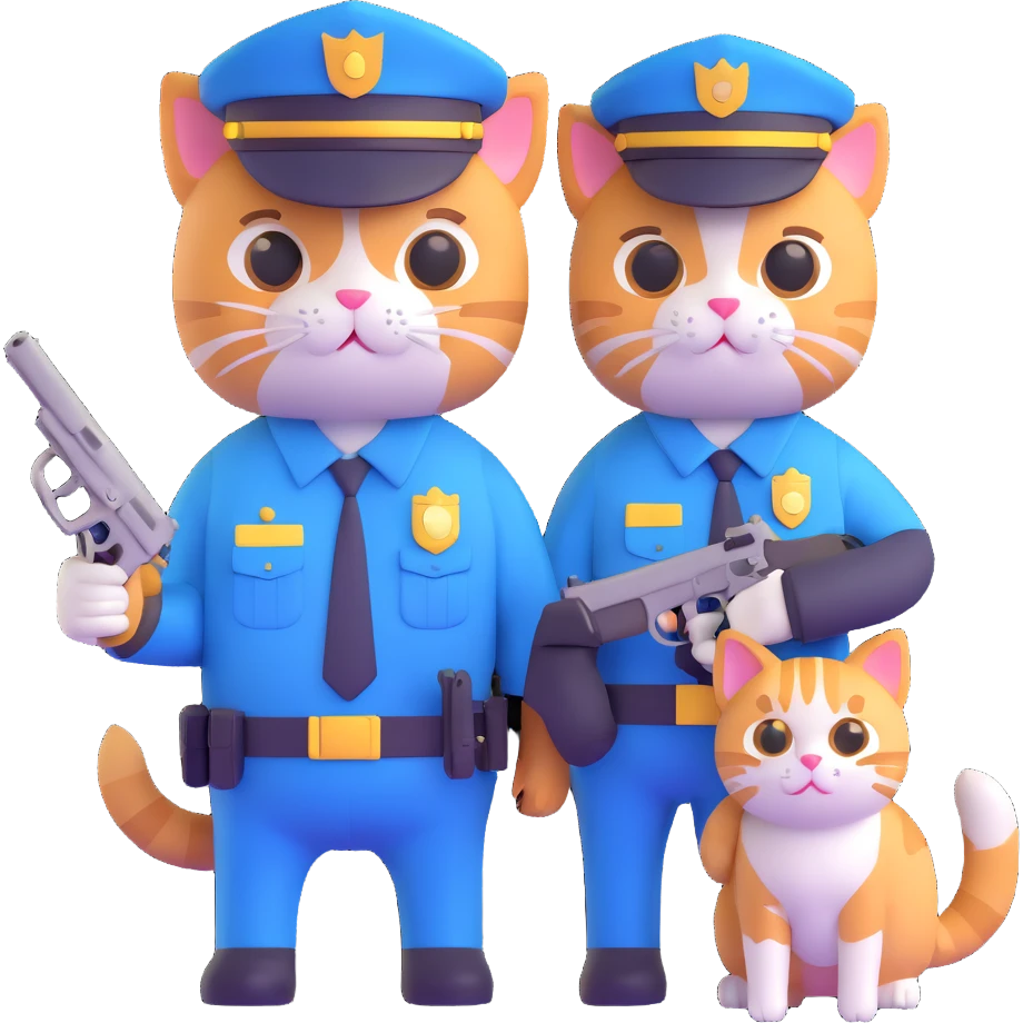 a police officer and a cat, the cat holding a small gun, both looking surprised emoji | AI Emoji Generator