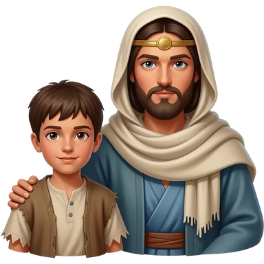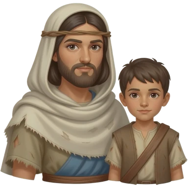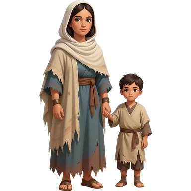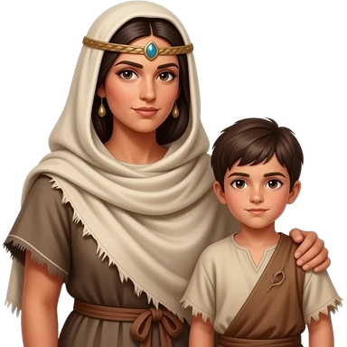 A Jewish nomadic woman a little boy, wearing old tattered draped clothing from biblical times emoji