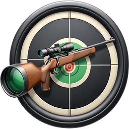 A precision shooter aiming with a rifle at a target, showcasing steady hands and concentration. The target is clearly visible, with concentric rings, symbolizing accuracy and control in a professional shooting range setting. emoji | AI Emoji Generator