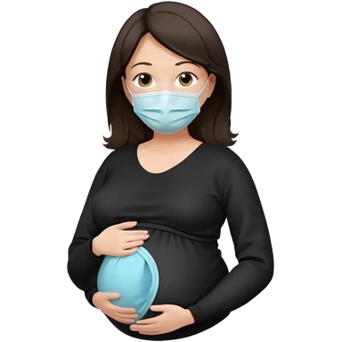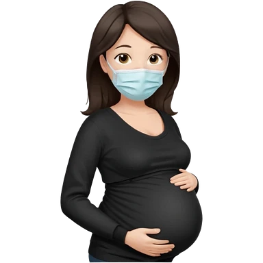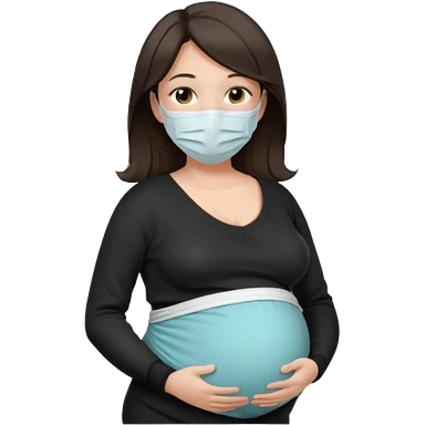 a pregrant lady with dark brown hair? Hair lengt above shoulder, wearing medical face mask, i wanna see the pregnant belly with black sweater emoji