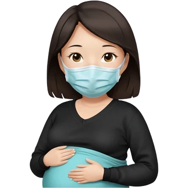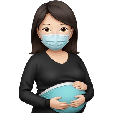a pregrant chinese lady with dark brown hair? Hair lengt above shoulder, wearing medical face mask, i wanna see the pregnant belly with black sweater emoji
