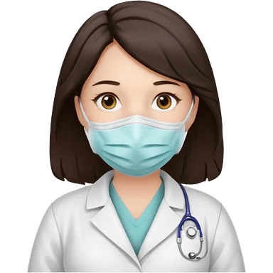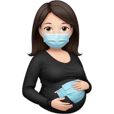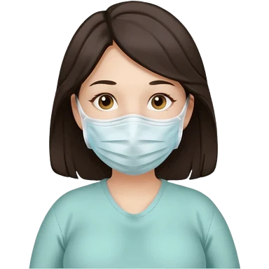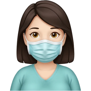 a pregrant lady with dark brown hair? Hair lengt above shoulder, wearing medical face mask emoji | AI Emoji Generator