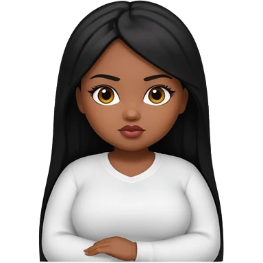 fat dark pretty bratz girl with black straight hair and white full sleeve emoji
