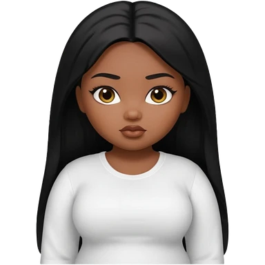 a pretty bratz brown girl with long straight black color hair and a white full sleeve emoji | AI Emoji Generator