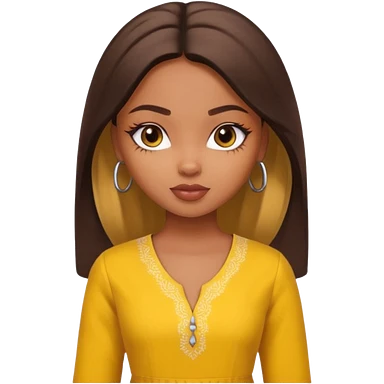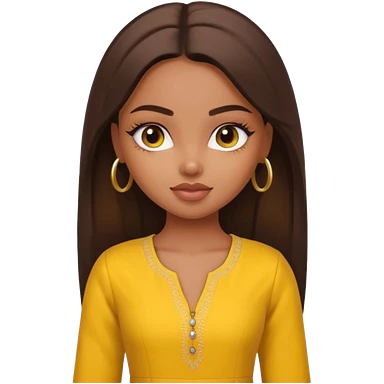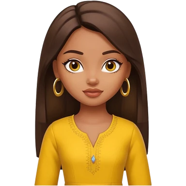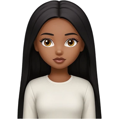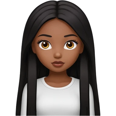 a pretty bratz brown girl with long straight black color hair and a white full sleeve emoji