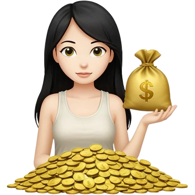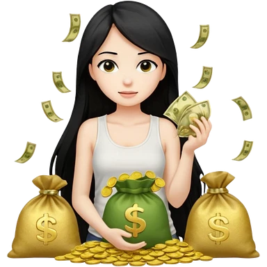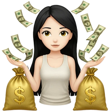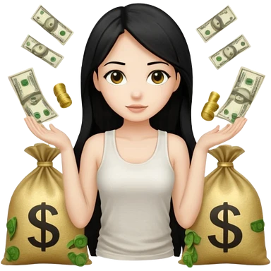 a pretty bratz fair girl with long straight black hair with a white tank top surrounded by money bags emoji