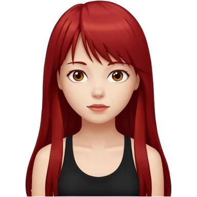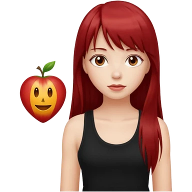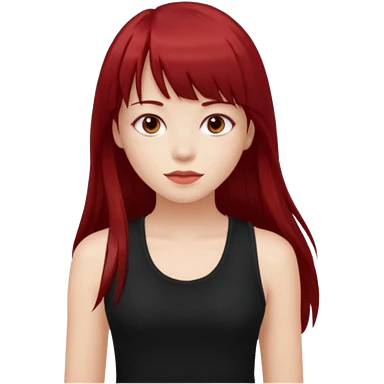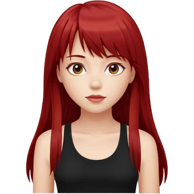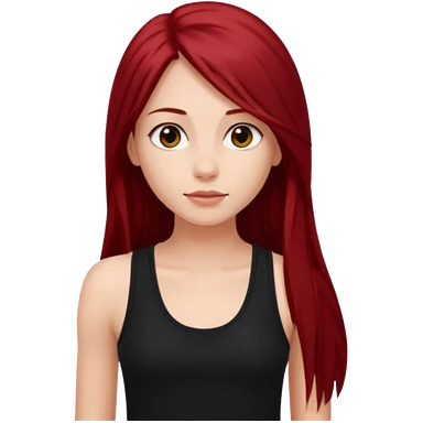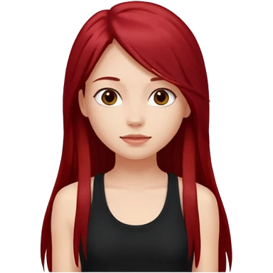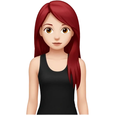 a pretty bratz fair girl with long dark red straight hair, wearing a black tank top emoji