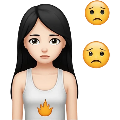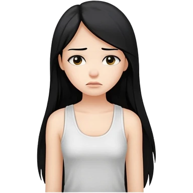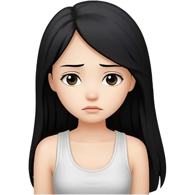 a pretty bratz fair girl with long straight black hair with a white tank top slightly sad emoji