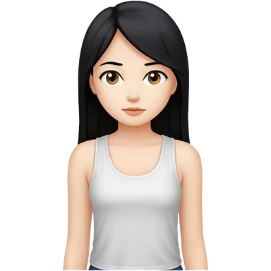 a pretty bratz fair girl with long straight black hair with a white tank top emoji