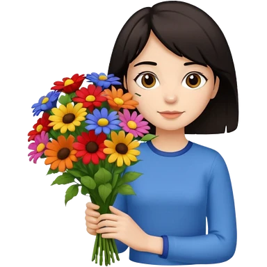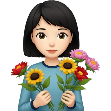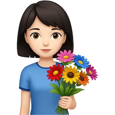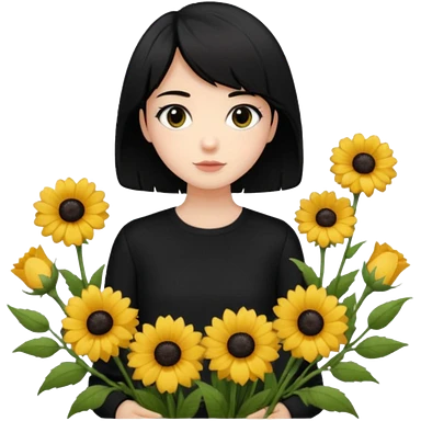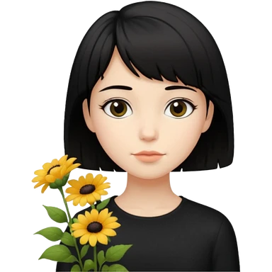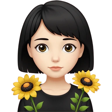 a pretty bratz fair girl with short black shaggy hair with a tall boy and flowers emoji