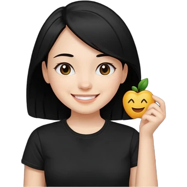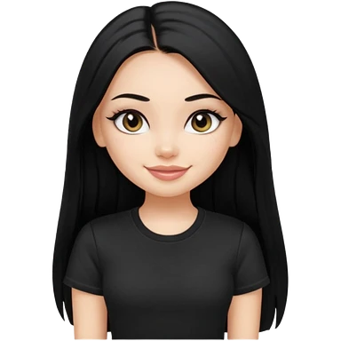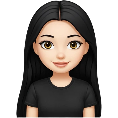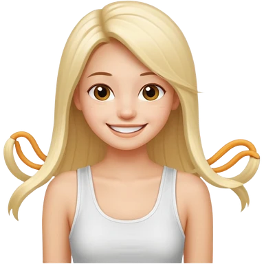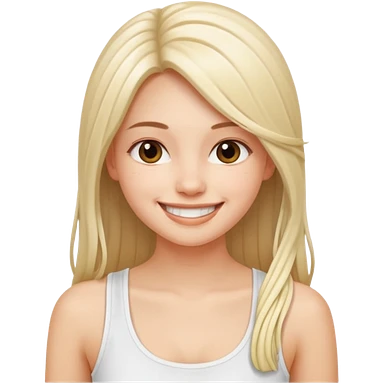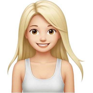 a pretty bratz fair girl with straight brunette long hair, middle partition. wearing a white thin strap trap tank top, smiling, wearing light makeup. very pretty. emoji | AI Emoji Generator