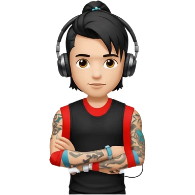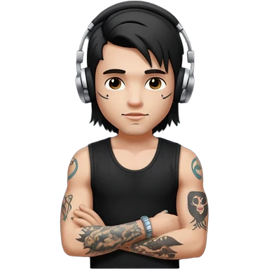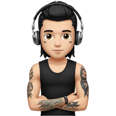 a pretty bratz guy with mullet and earphones and a sleeveless black top with tattoos on arm emoji