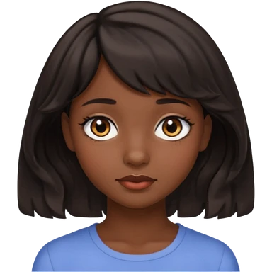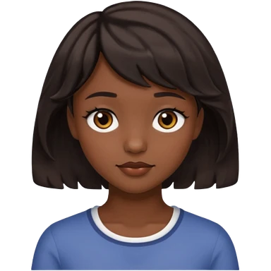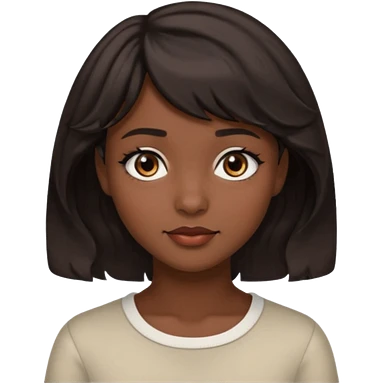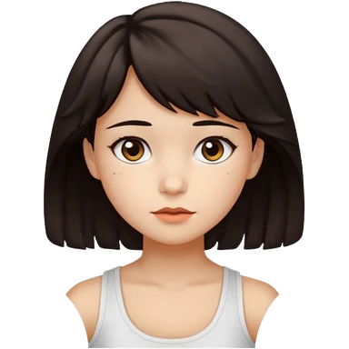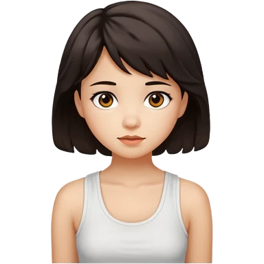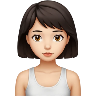 A pretty girl with dark brown eyes and short wavy dark hair with short side bangs and a neutral expression, with chinita skin and a white tank top(not sleeveless)emoji emoji | AI Emoji Generator