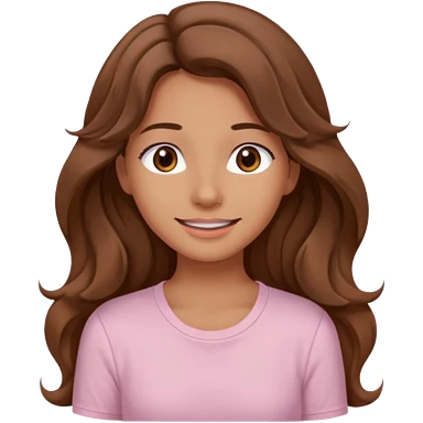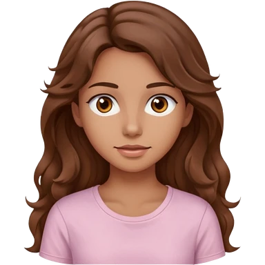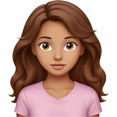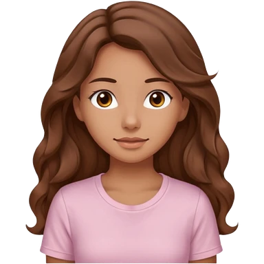 A pretty girl with light skin and long straight black brown hair, wearing a very light pink basic hoodie with brown eyes and makeup emoji | AI Emoji Generator