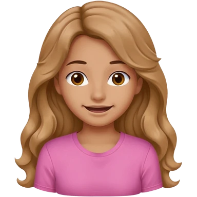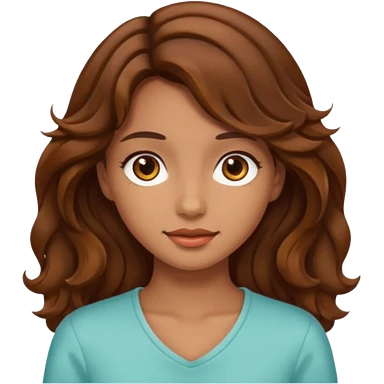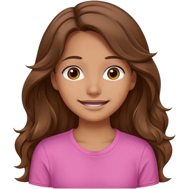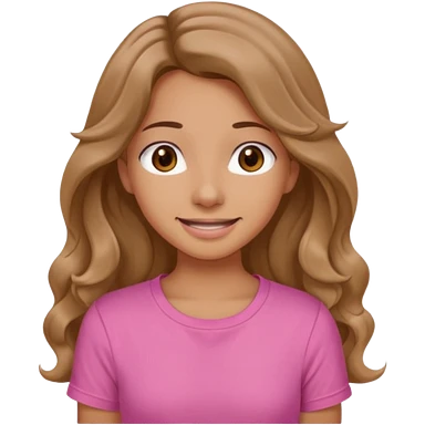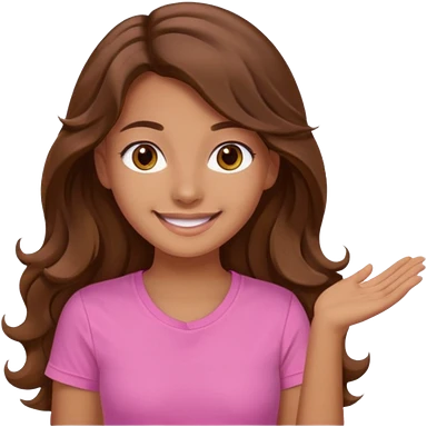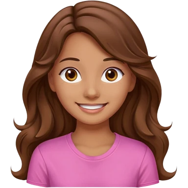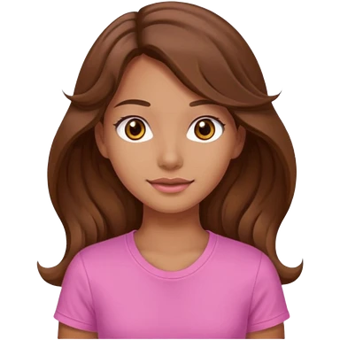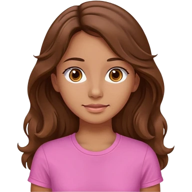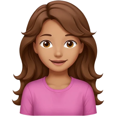 A pretty girl with tan skin and long brown wavy hair, wearing a very light pink basic shirt with brown eyes emoji | AI Emoji Generator