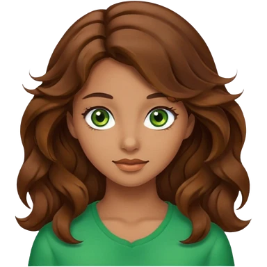 pretty bratz girl, long wavy brown hair, pale green eyes, black eyeliner, tan skin emoji