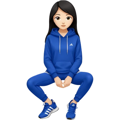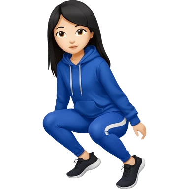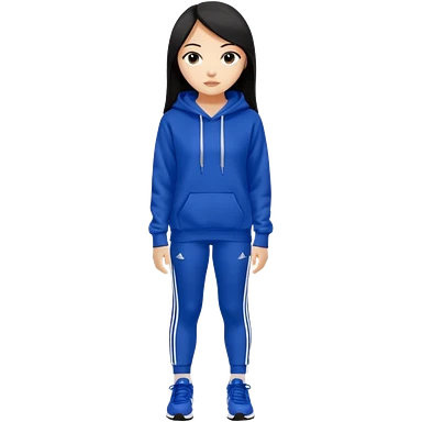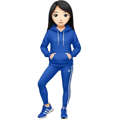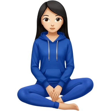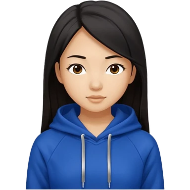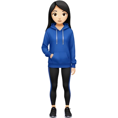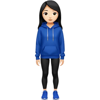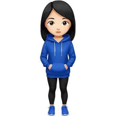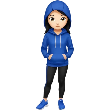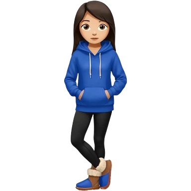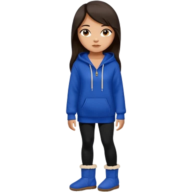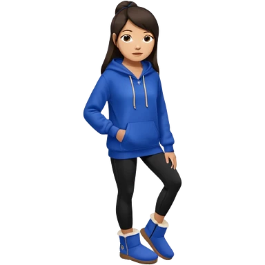 A pretty white/asian tanned girl with medium long strait dark brown almost black hair wearing a royal blue hoodie and black leggings pretty tan with Ugg slippers emoji | AI Emoji Generator