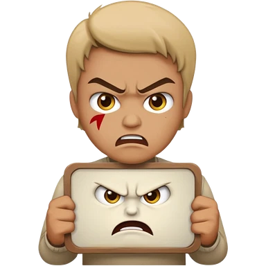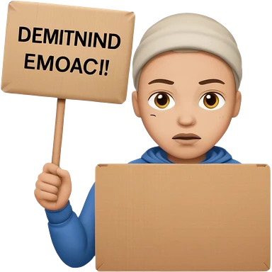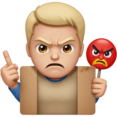 A protester with a sign with an angry face on the sign emoji | AI Emoji Generator