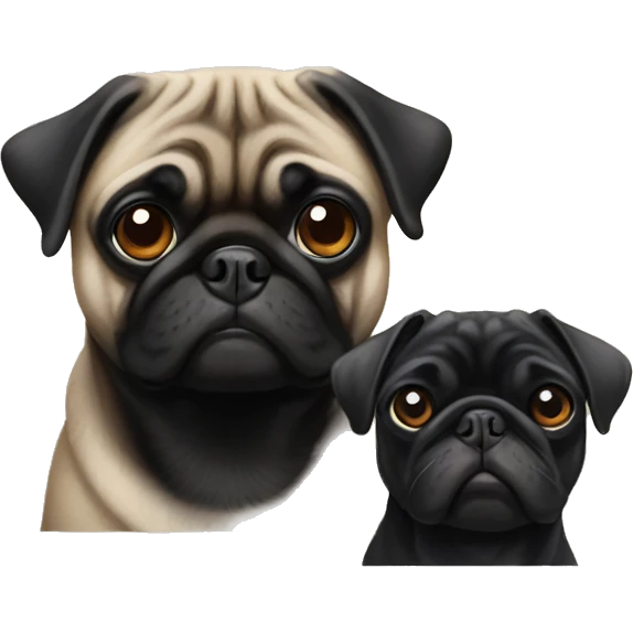 a pug couple, a beige pug and a black pug smoking a Joint emoji