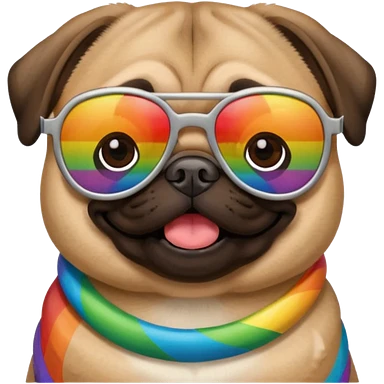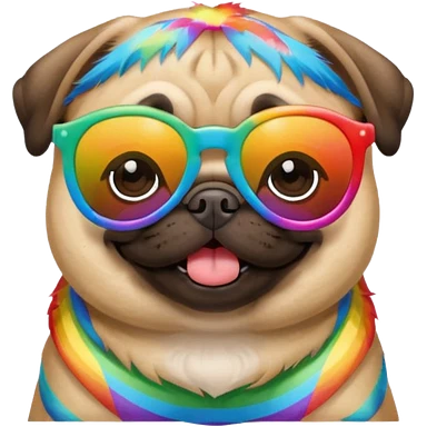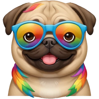 pug wearing rainbow emoji