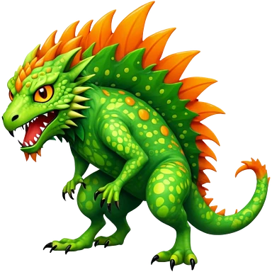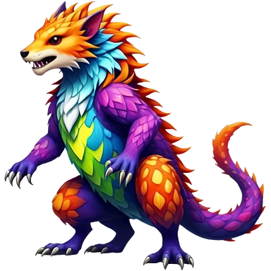 a vibrant colorful edgy vernid-fionbri-creature with splashed scale patterns full body emoji