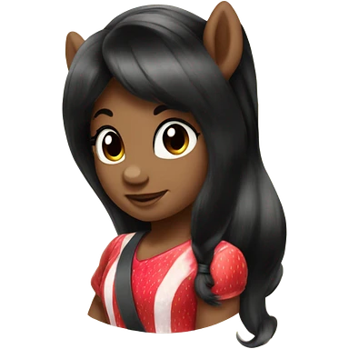 A girl Pony like “my little pony” ones, brown colored, with a big black hair and a strawberry as their sign emoji