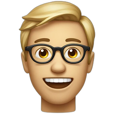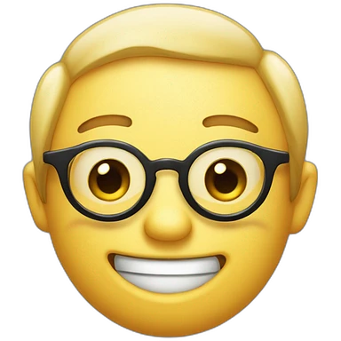 a bespectacled emoji points the index finger skywards and has two prominent upper incisors, while the lower incisors are hidden by the lower lip. emoji