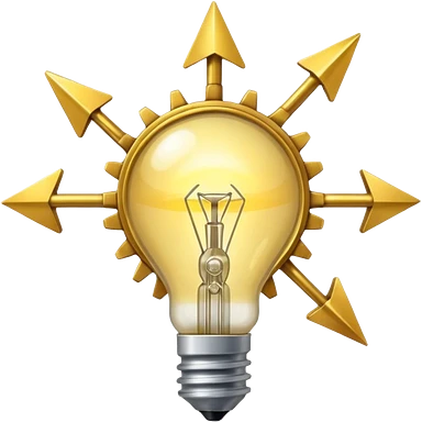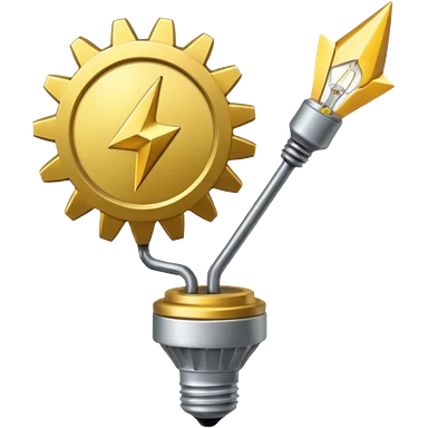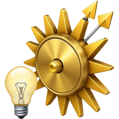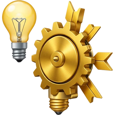 a gear with golden raising arrow behind it on the right side, and then a small golden beaming light bulb on the left side emoji