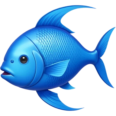 A simple, symmetrical fish shape formed by two intersecting curved arcs, with a pointed tail on the right and a rounded head on the left, filled solidly in vibrant medium blue color (hex #007BFF or similar royal blue shade with slight gloss for a 3D effect), emoji