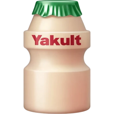 a tiny bottle that says yakult in red letters and a green cap on top. The liquid inside is beige with a pink tone emoji
