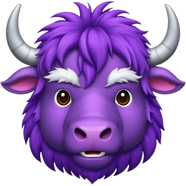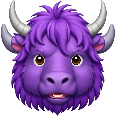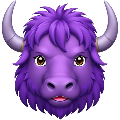 a purple yak Head with pieces of orange paper hanging in his head emoji | AI Emoji Generator