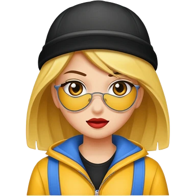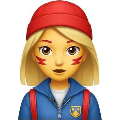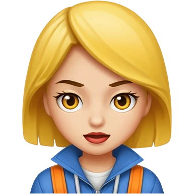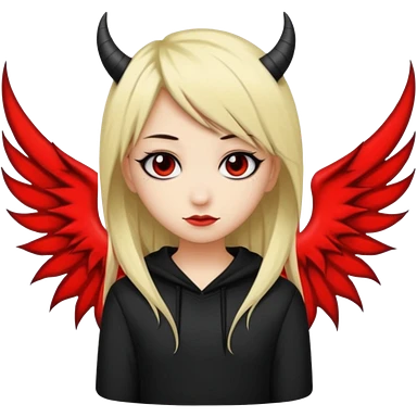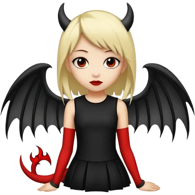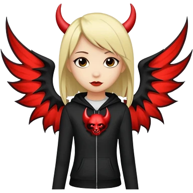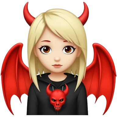 A black and blonde haired girl with a devils wing and tail and she's emo emoji
