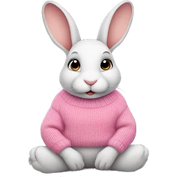 Rabbit is sitting wearing pink sweater and green baseball cap emoji
