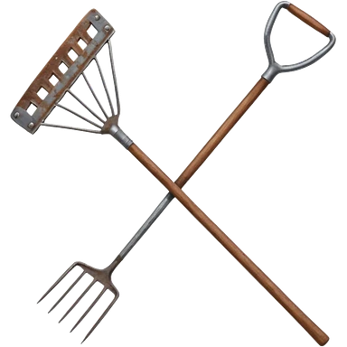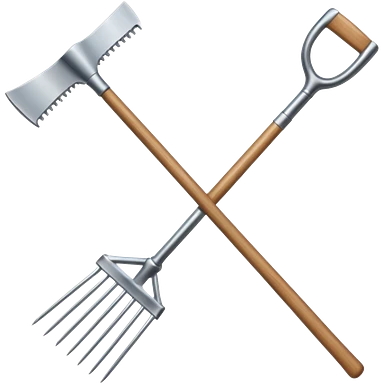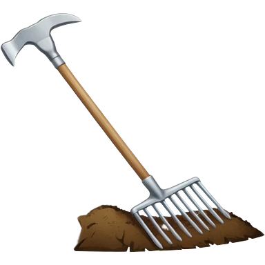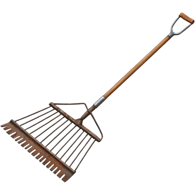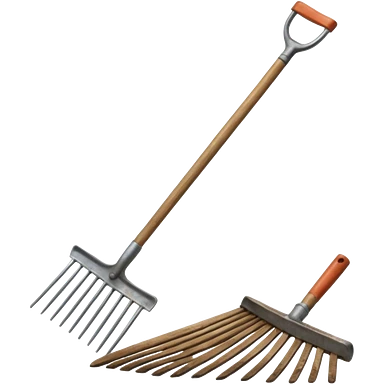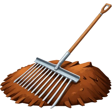 A rake that has flayed out prongs, and a thicker rod/handle emoji
