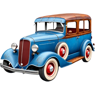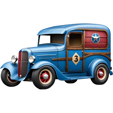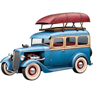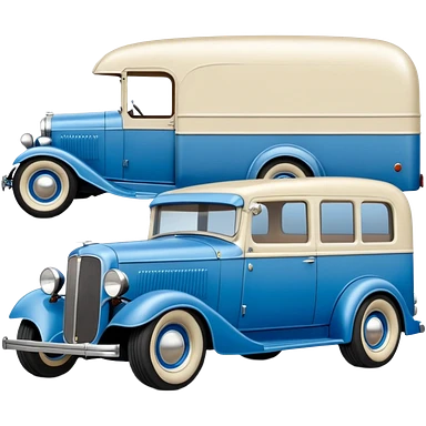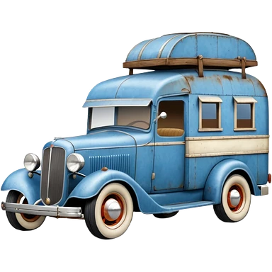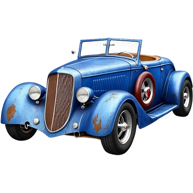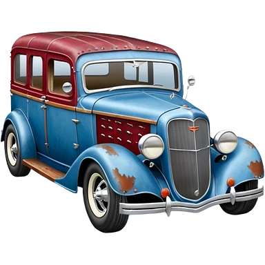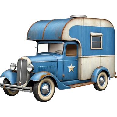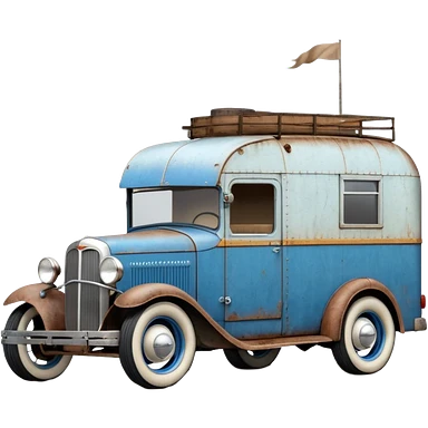A rat rod 1934 hot rod caravan pulling a large matching trailer, blue and pearl emoji | AI Emoji Generator