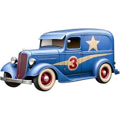 Hot wheels style, ice cream truck from 1934 with wide chrome mag wheels, blue, no ice cream on top of truck, open selling window. emoji