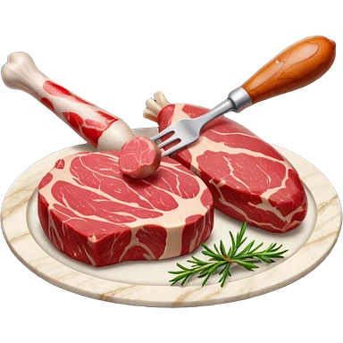 A raw red steak with visible marbling placed next to a small chicken drumstick. emoji | AI Emoji Generator