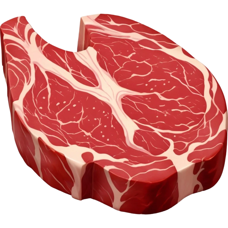 A raw steak with a deep red, fresh color and visible marbling of white fat. The surface is moist and smooth, slightly glossy, with natural muscle texture. The shape is thick and rounded, resembling a fresh cut of beef ready to be cooked emoji | AI Emoji Generator