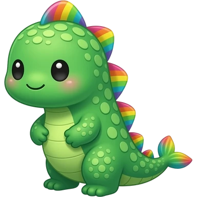 Kawaii chibi loch ness monster with cute eyes, bright green scales with rainbow sheen, adorable, fins emoji