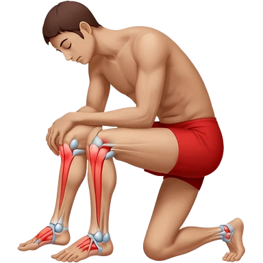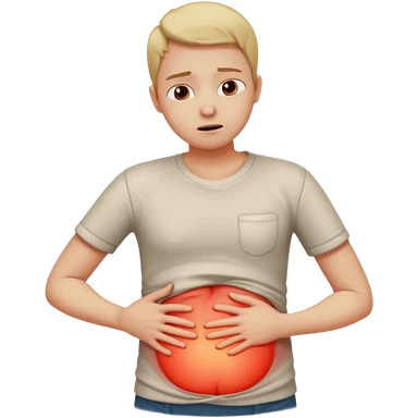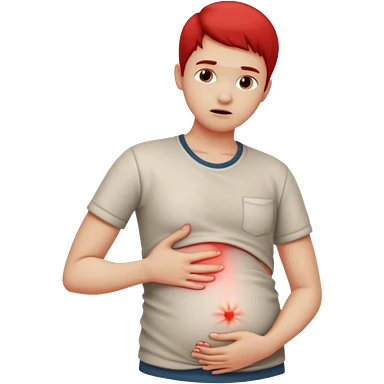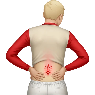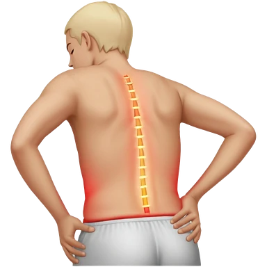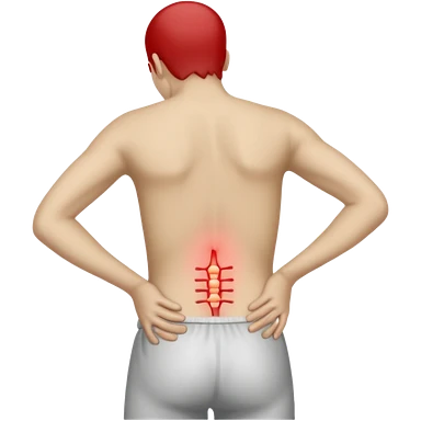 A realistic medical illustration of a person standing and holding their lower back in pain. A soft red glow highlights the lower back area to indicate soreness. The person has a natural expression of discomfort. Clean white background, even lighting, clinical style, full body view.emoji