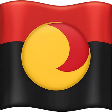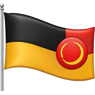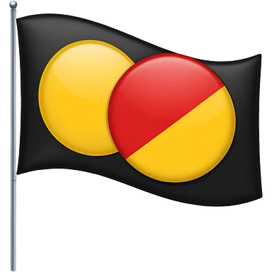 a rectangular flag with the top half solid black and the bottom half solid red with a medium-sized yellow circle in the middle overlapping both colours emoji | AI Emoji Generator