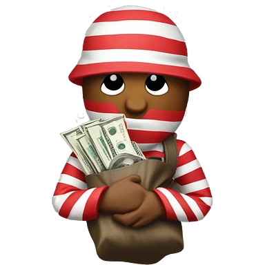 Make me a robber with a red and withe stripes as a shurt holding a money bag on the back emoji