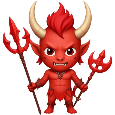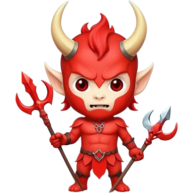 a Red devil, short horn Chibi red demon hold a trident emoji