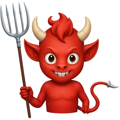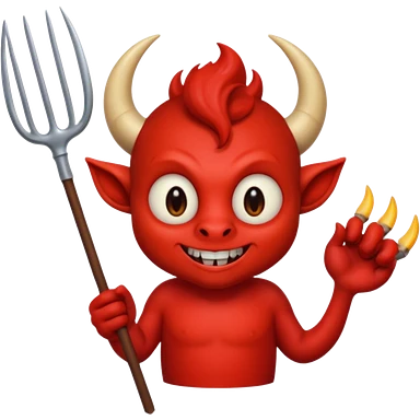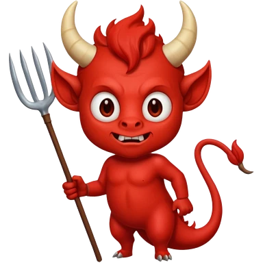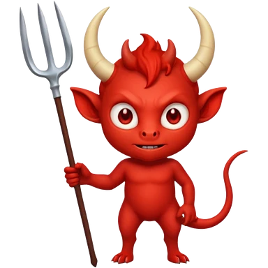 a Red devil, short horn Small red imp holding pitchfork, tail curled emoji