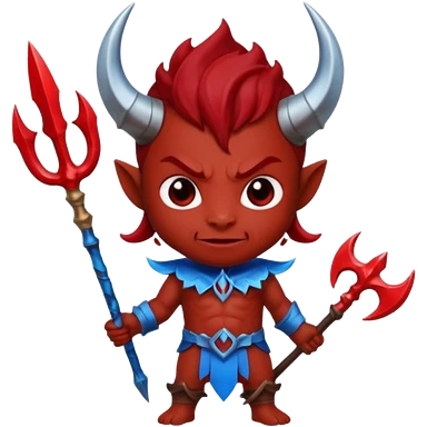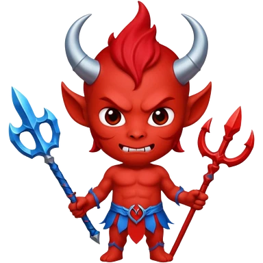 a Red devil, short horn Chibi red demon hold a blue trident emoji